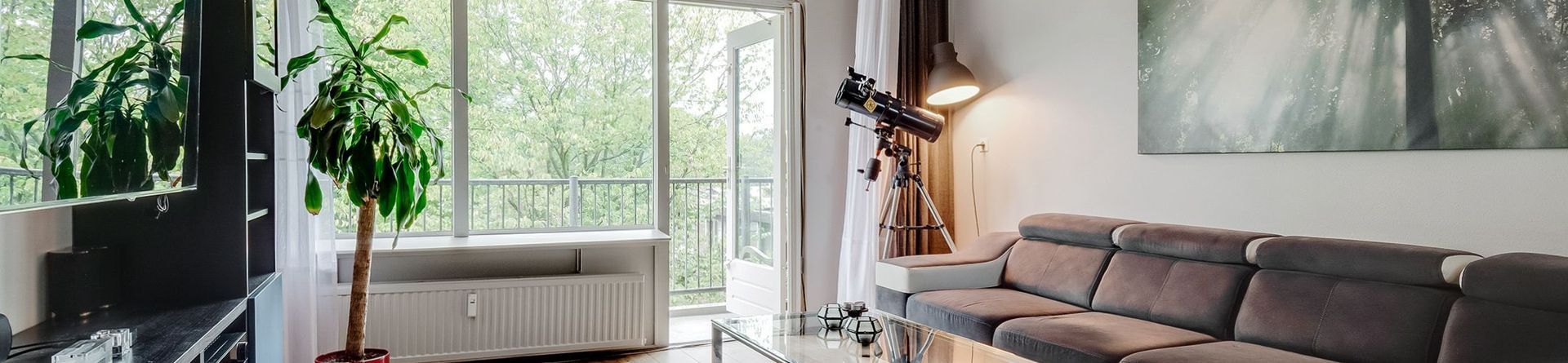 Vanuit de galerij betreed je de woning. Bij binnenkomst loop je de lichte woonkamer in met open keuken. De keuken bevindt zich aan de voorzijde van het appartement en tijdens het koken kijk je fijn naar buiten. De keuken is uitgerust met een 5-pits gasfornuis, afzuigkap, oven, vaatwasser, magnetron en koelkast met vriezer. Hier vind je ook de boiler die het gehele appartement van warm water voorziet.