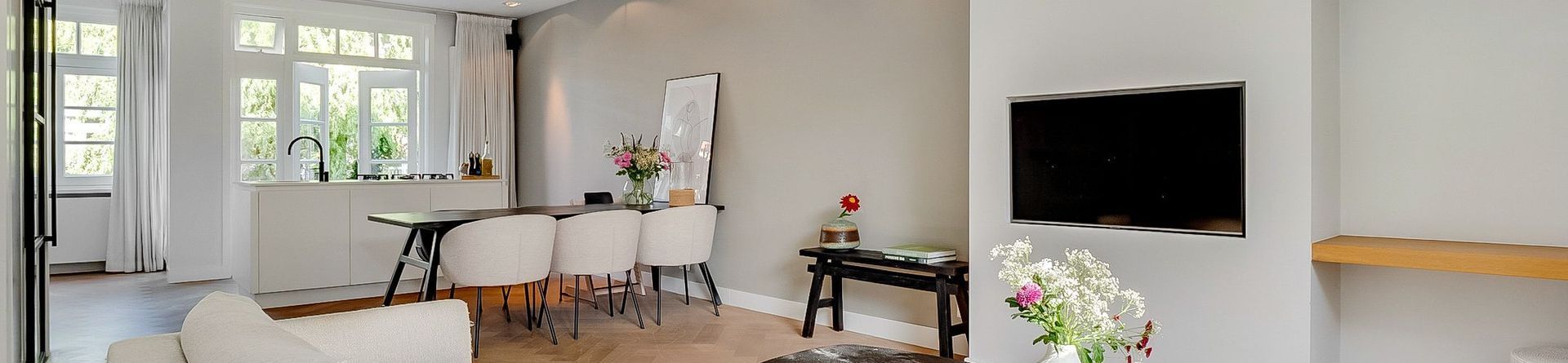 Het hart van deze woning is de woonkamer met open keuken. Dit is waar je kookt, ontspant en gasten een warm welkom biedt.