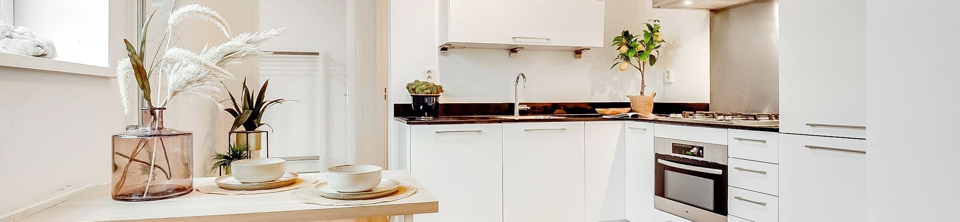 Aan de voorzijde ligt de woonkamer van circa 15 m². Dankzij de open ligging en het vrije uitzicht voelt deze ruimte licht en aangenaam aan. Hier zit je fijn, met zicht op het groene en brede straatbeeld van de Olympiaweg.
