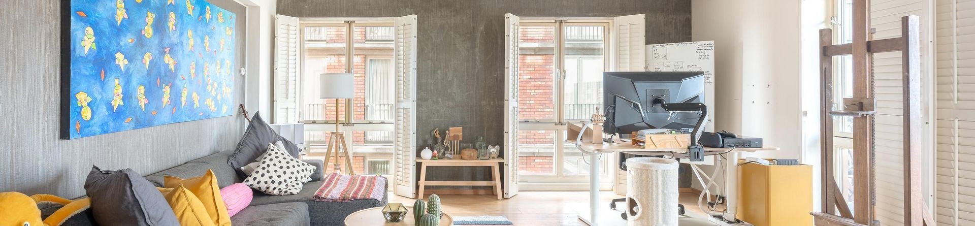 - Alle ramen in het appartement zijn voorzien van shutters. Wit in woonkamer, grijs in slaapkamers.