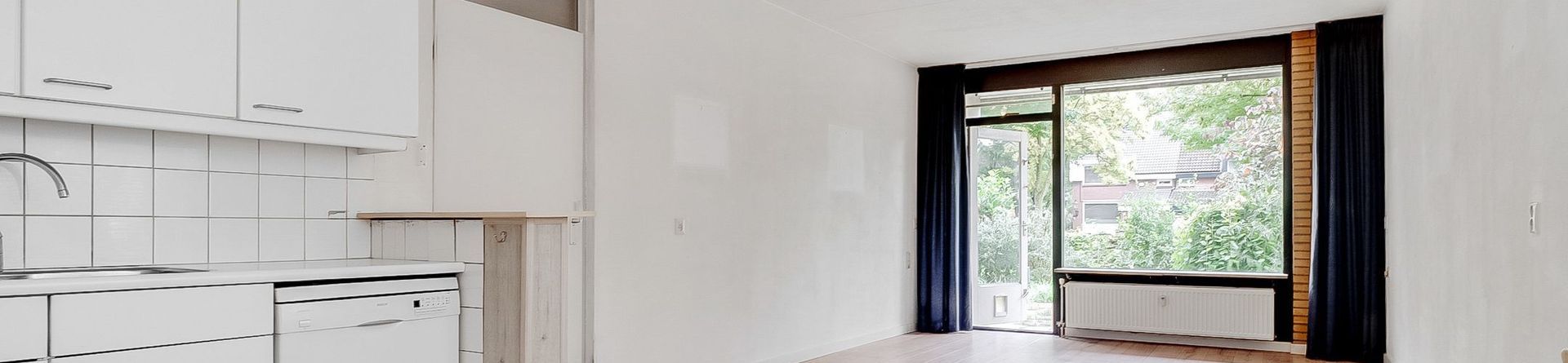 De open keuken is functioneel en netjes, maar gedateerd en zonder inbouwapparatuur – een mooie kans om het geheel naar eigen smaak in te richten. De slaapkamer, gelegen aan de rustige achterzijde heeft een goed formaat en biedt voldoende plek voor kledingkasten.